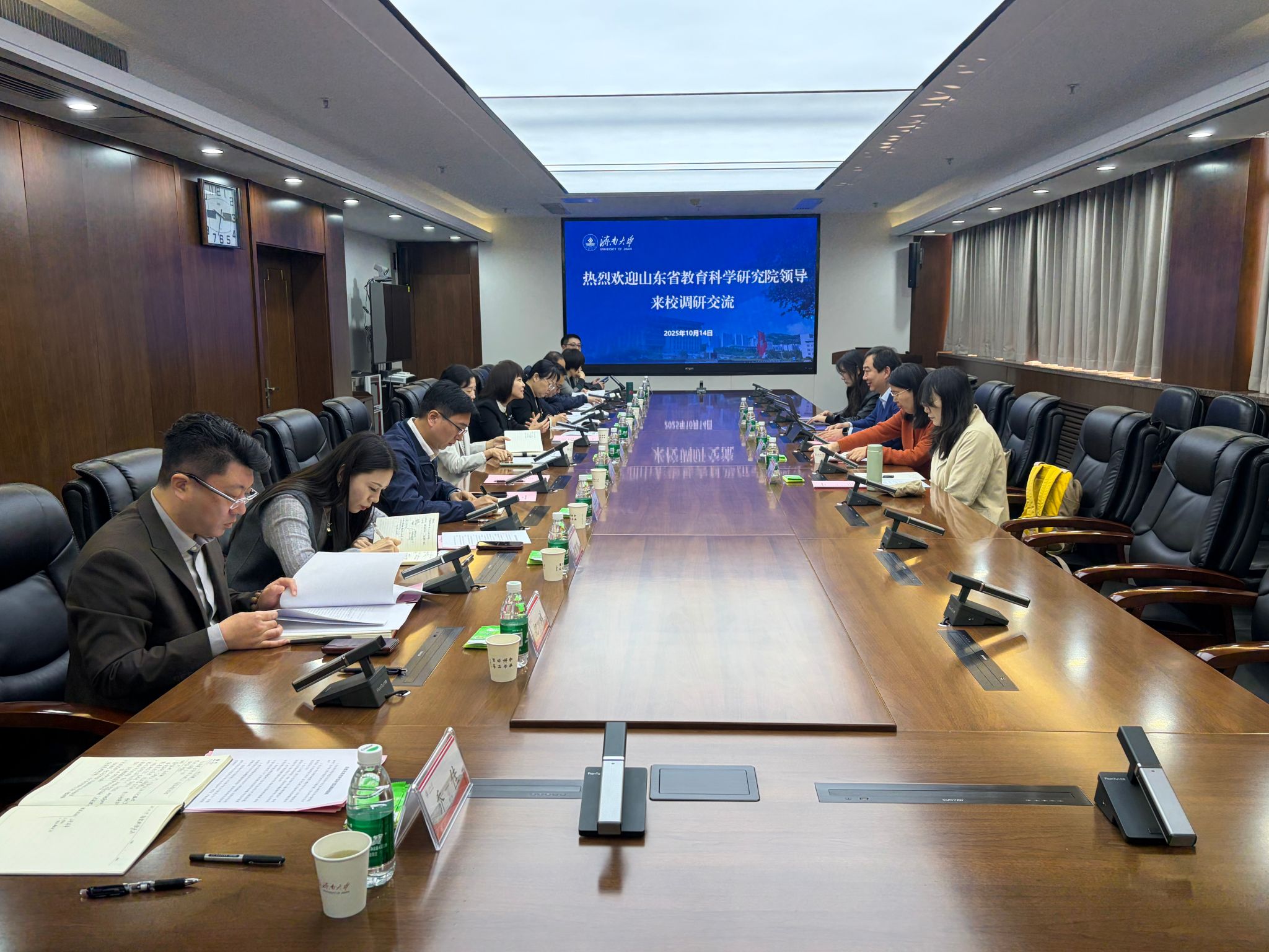 10月14日上午,山东师范大学数智技术与未来教育研究院院长李逢庆和山东省教育科学研究院相关同志一行4人来校调研交流。调研交流会由304.cam永利集团处长付秀丽主持。